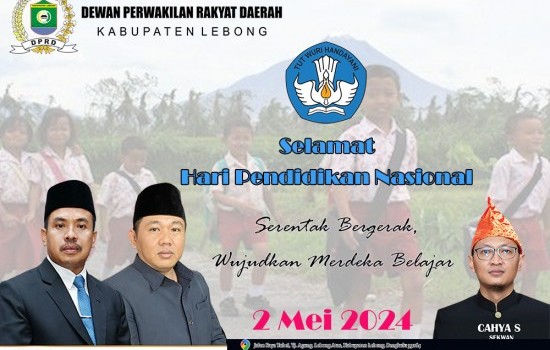 Sekretariat Dewan Perwakilan Rakyat Daerah (DPRD) Kabupaten Lebong mengucapkan Selamat Hari Pendidikan Nasional 2 Mei 2024. Serentak Bergerak, Wujudkan Merdeka Belajar.