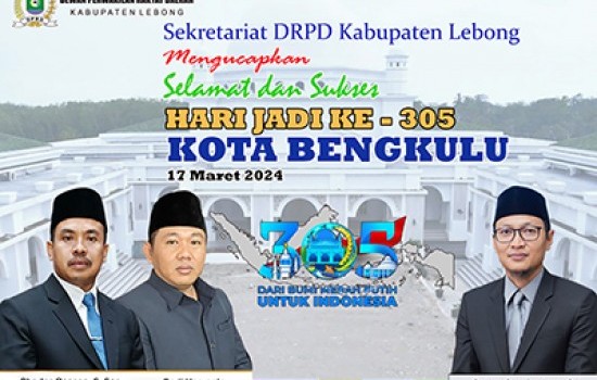 Sekretariat DPRD Kabupaten Lebong mengucapkan Selamat dan Sukses Hari Jadi ke - 305 Kota Bengkulu, dari Bumi Merah Putih untuk Indonesia.