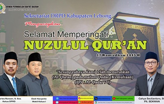 Sekretariat DPRD Kabupaten Lebong mengucapkan Selamat memperingati NUZULUL QUR'AN 17 Ramadhan 1445 H.